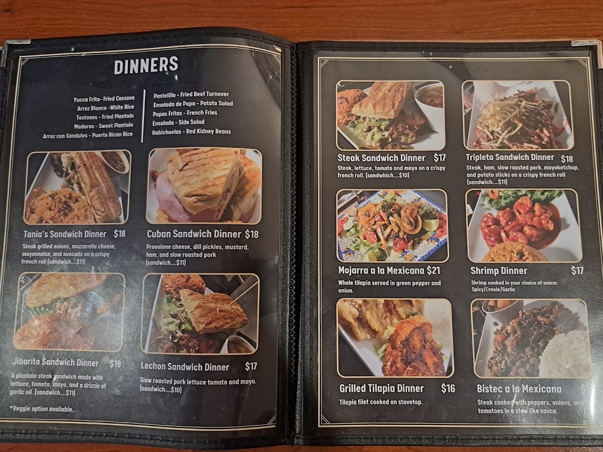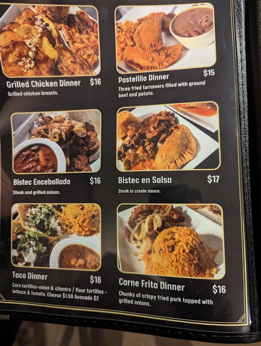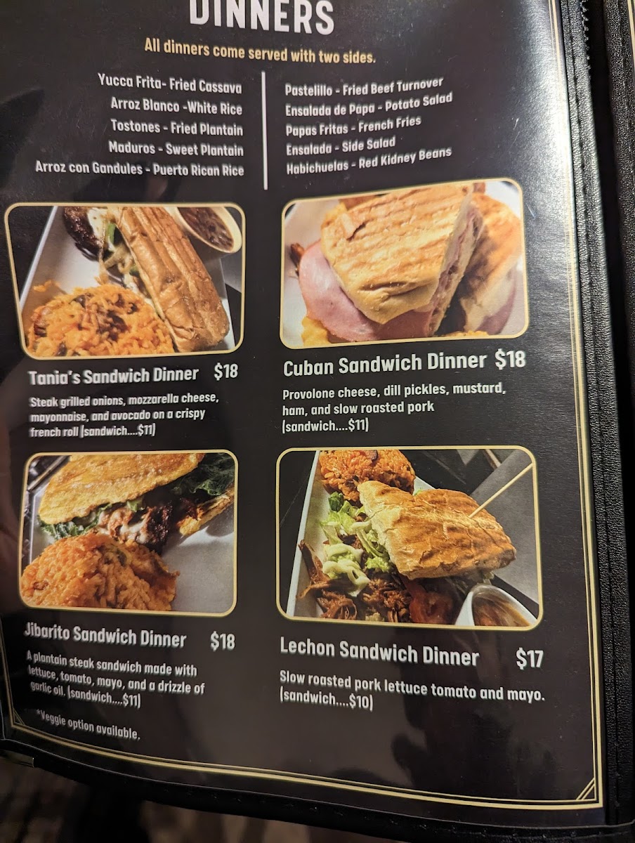 Puerto Rican style sandwich with fried plantain as the bread, steak, lettuce, tomato, mayo, & garlic oil. Choose up to two sides.
