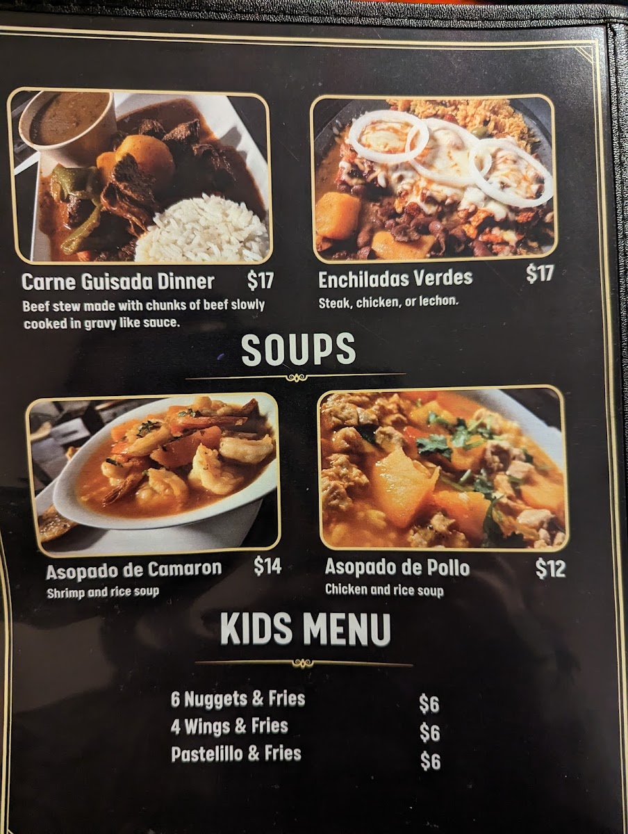 Steak, chicken, pork, and shrimp cooked in green peppers, onions, and tomatoes. Served with a side of tortillas & two sides.